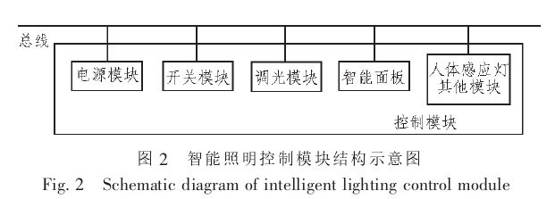 从图2可以看出,该控制模块主要由电源模块、开关模块、调光模块、智能面板、感应模块等相关部分构成。系统上的所有元件,可以一对一的独立工作,也可以相互组合工作。